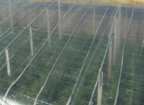3.使用方法:將布條一端固定在溫室頂部后屋面上,另一端固定在溫室前屋面棚腳處,長(zhǎng)度略長(zhǎng)于棚的跨度,這樣布條會(huì)隨風(fēng)擺動(dòng),其上有絨毛的一端會(huì)輕柔地擦掉棚膜上的附著物,從而保持棚膜的清潔度,增加棚膜的透光度。